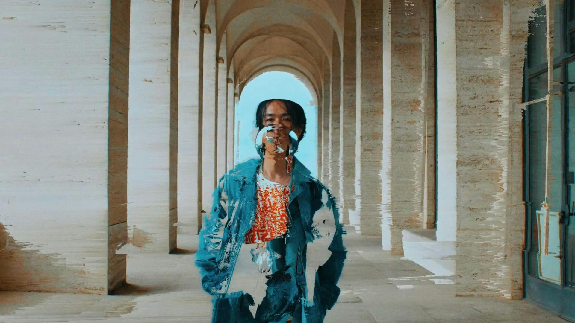 The artist Ryuji Imaichi, a contemporary Japanese symbol, stands among ancient buildings. Dynamic effects disrupt the static timelessness, bridging past and present in perfect harmony. Directed by Simone Yang.